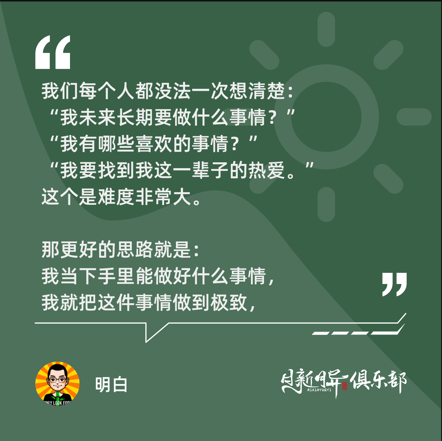 这就和成长一样,我们每个人都没法一次想清楚,哎,我未来长期要做什么事情?我有哪些喜欢的事情?我要找到我这一辈子的热爱,这个是难度非常大。
