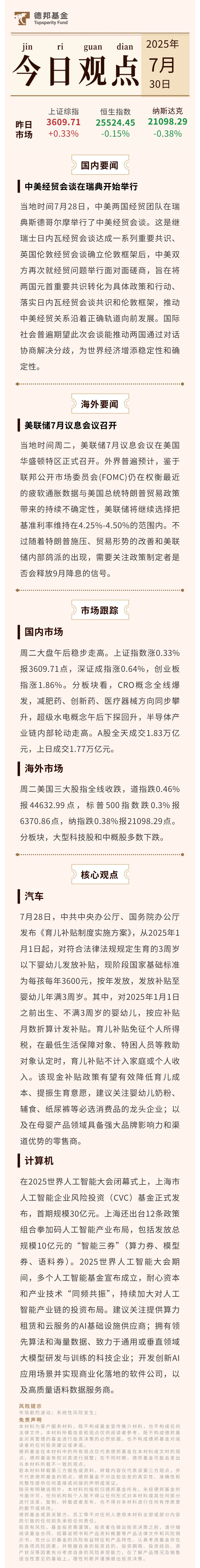 7月30日财经速递,带您最快跟踪板块表现和市场资讯!