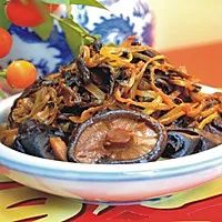 锅烧热后放少量油,把这些丝先炒到半熟备用。另外起一个锅,油要多一点,银丝芥菜很吃油。把银丝芥菜煸炒到变软、体积变小了,把刚才半熟的各种丝都倒进来一起翻炒均匀。加盐,糖,醋,加盖焖煮10~15分钟即可。