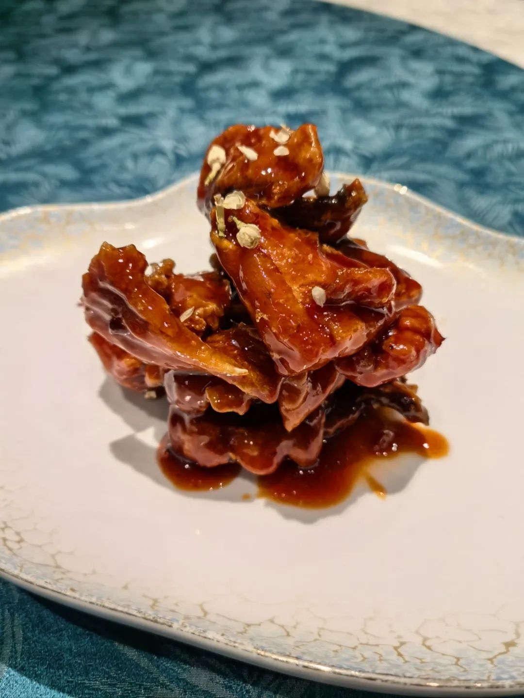 调制酱汁:在锅中加入清水、生抽、老抽、蜂蜜、香醋、冰糖等调料,煮至浓稠备用。
