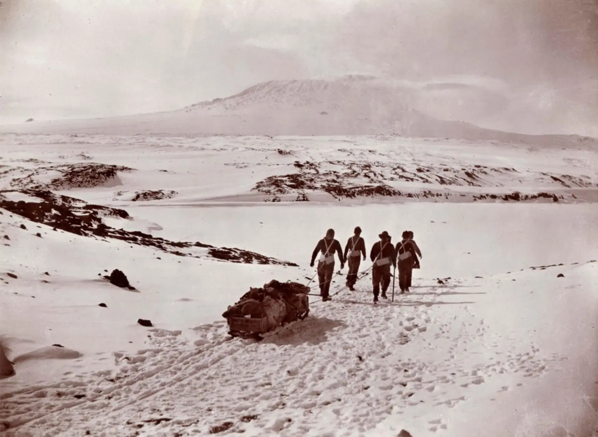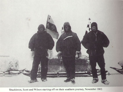 沙克尔顿的第一次南极冒险,拍摄于1902年,从左到右(沙克尔顿,斯科特,威尔森)