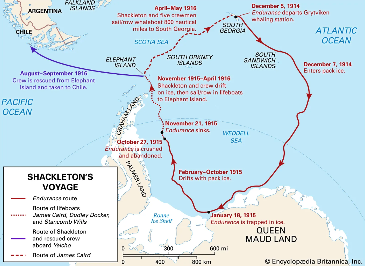 沙克尔顿「坚韧号」探险队南极被困700天,求生线路图