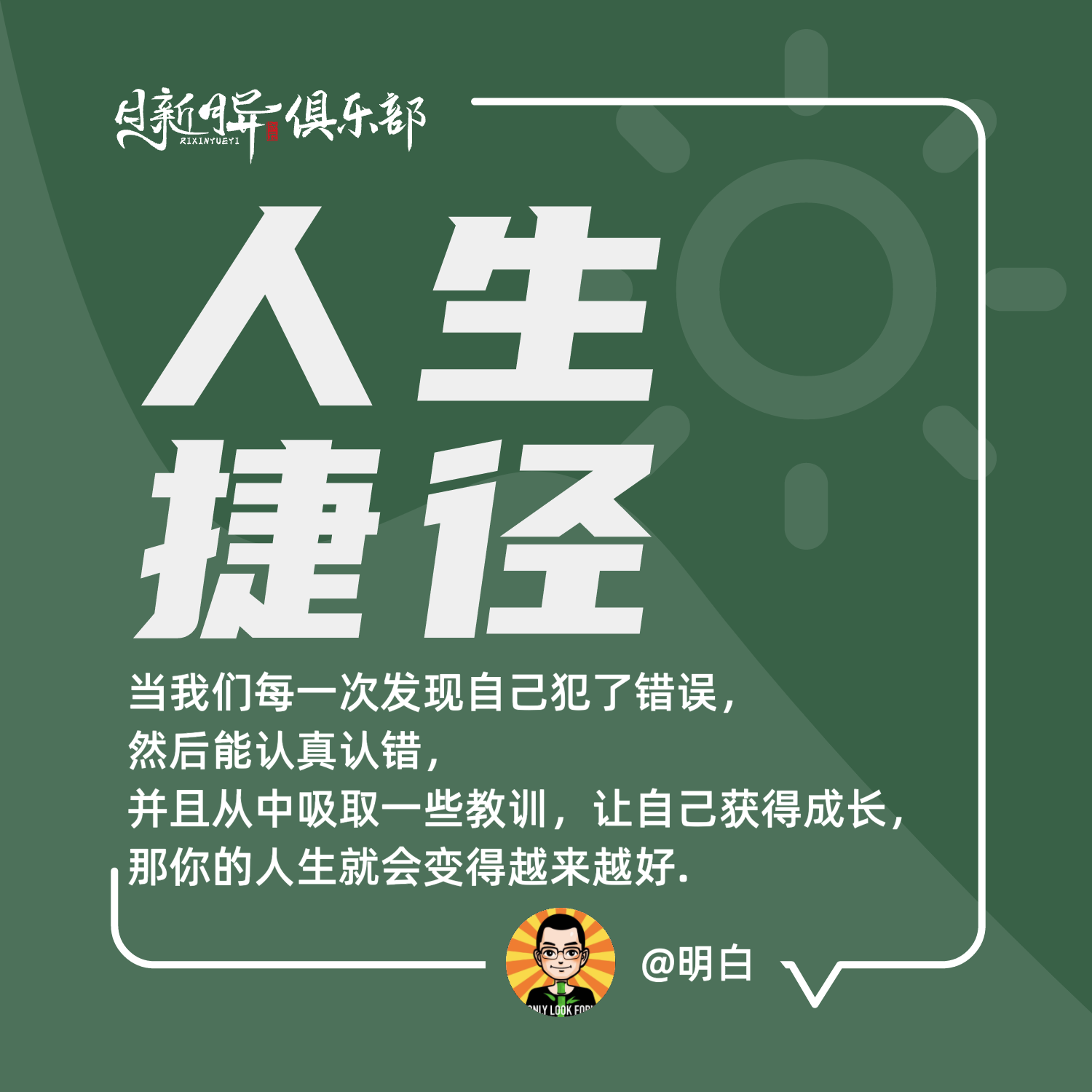 当我们每一次发现自己犯了错误,然后能认真认错,并且从中吸取一些教训,让自己获得成长,那你的人生就会变得越来越好,这就是我们把它叫做捷径。