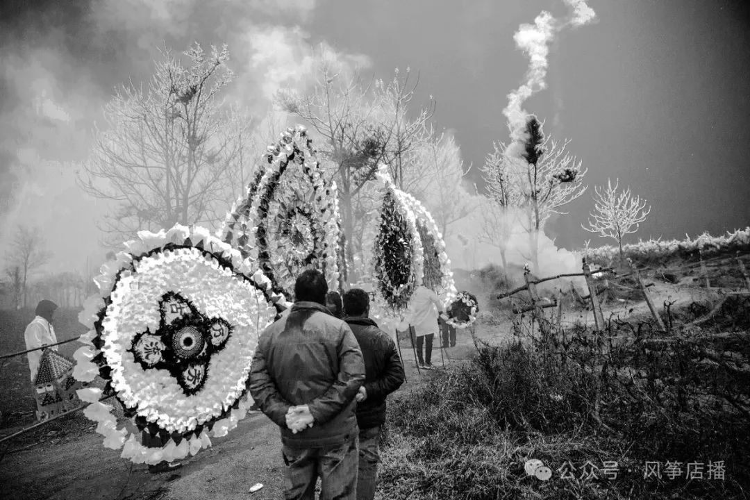 网上我查了一篇文章是专门研究这个事情的,说是菊花祭奠的源头其实是来自拉丁南欧的天主教传统,它说到在民国时期从大陆到香港的老照片,都没有大摆菊花,现场都是传统的纸花纸马、幡旗仪仗。这样一说,我回想一下,好像确实是这样,一些电影里面撒的都是纸花。