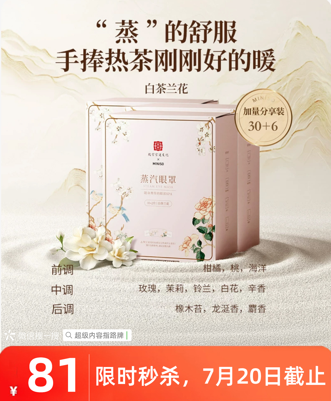 2、【囤货装3盒36片】MINISO故宫宫廷系列蒸汽眼罩(白茶兰花)