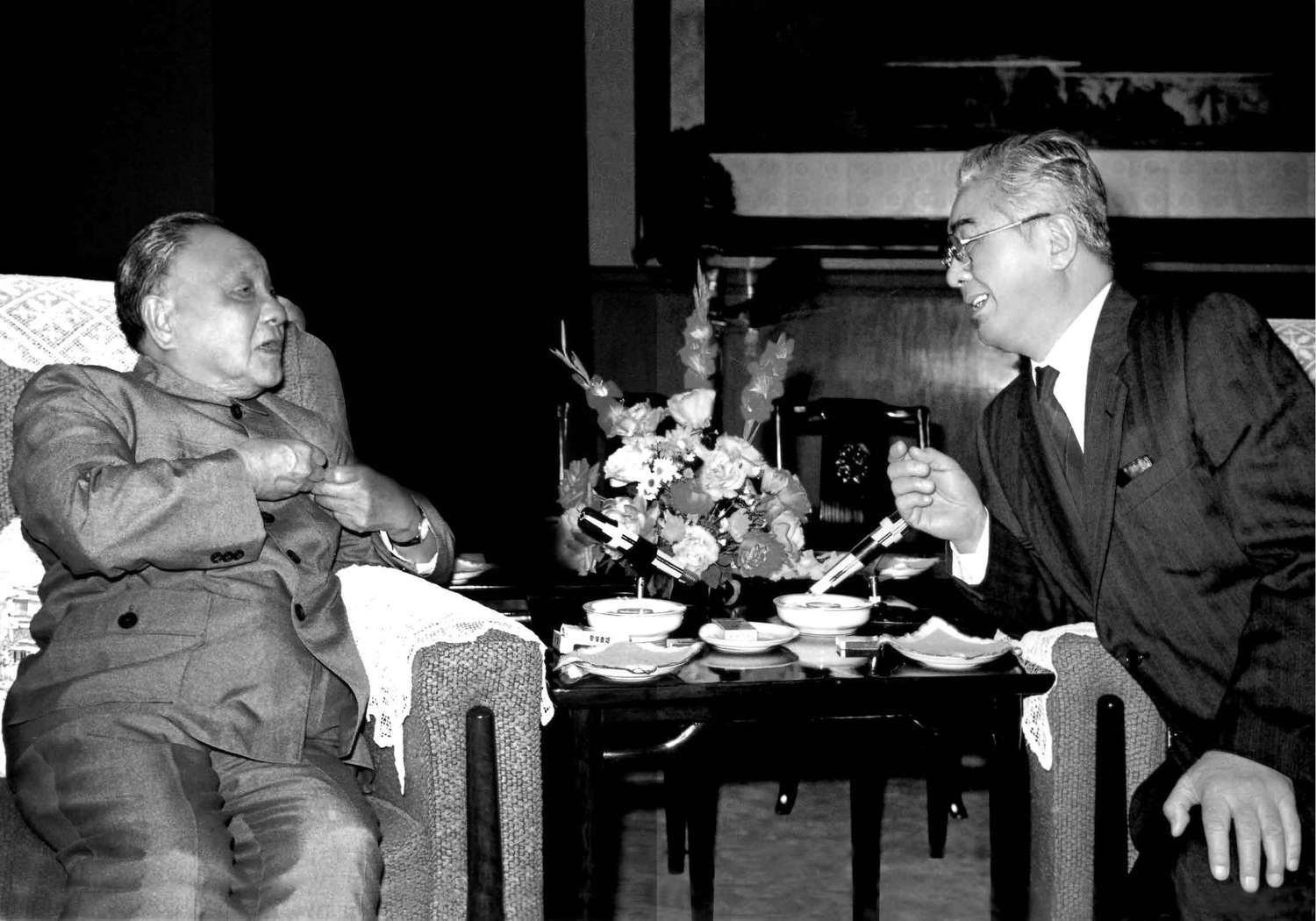 1988年5月23日,邓小平与荣毅仁亲切交谈