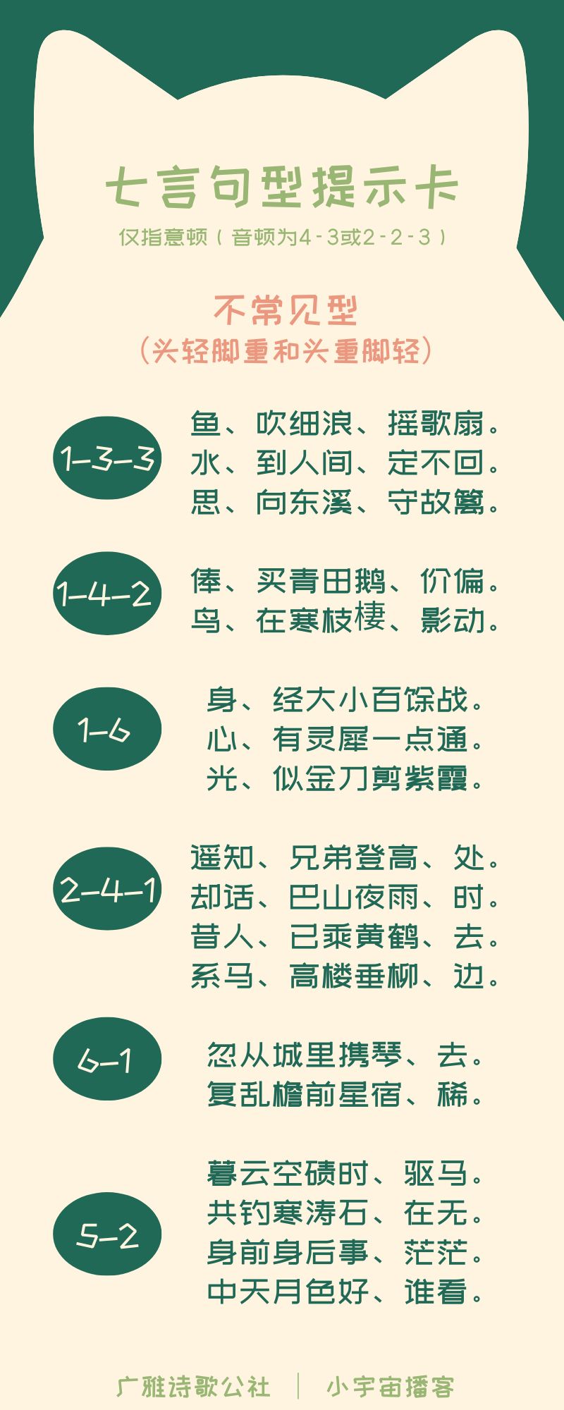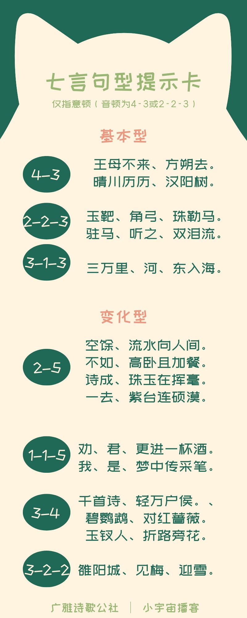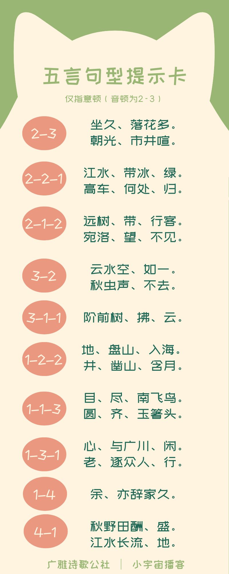 2)句法:吃透句法是技法的重中之重 - 请参考以下五言七言句型提示卡
