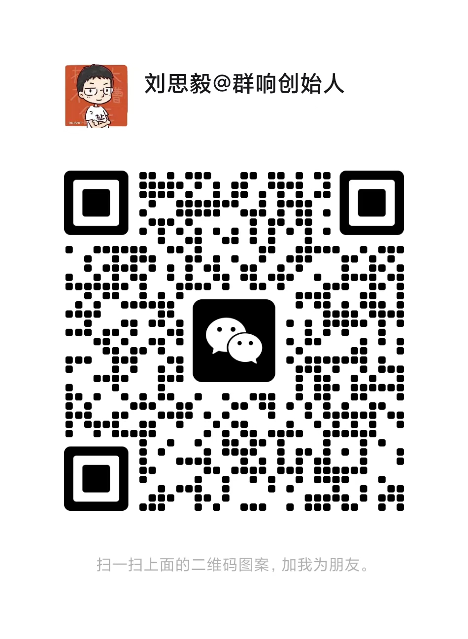 刘思毅:公众号「群响刘老板」,群响创始人,每天访谈1位年入 100 -1000 万的年轻创业者、日更原创文章 2000 天,和100万年轻创业者一起成长的男人。
