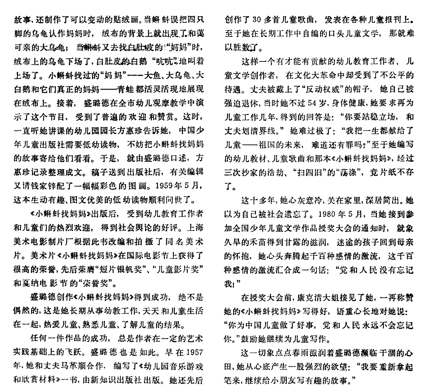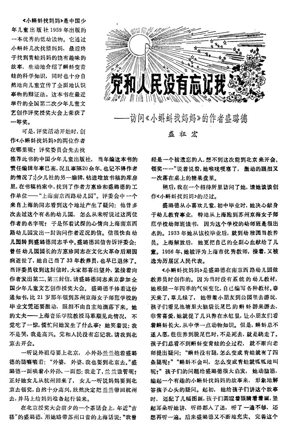 党和人民没有忘记我——访问《小蝌蚪找妈妈》的作者盛璐德 盛祖宏