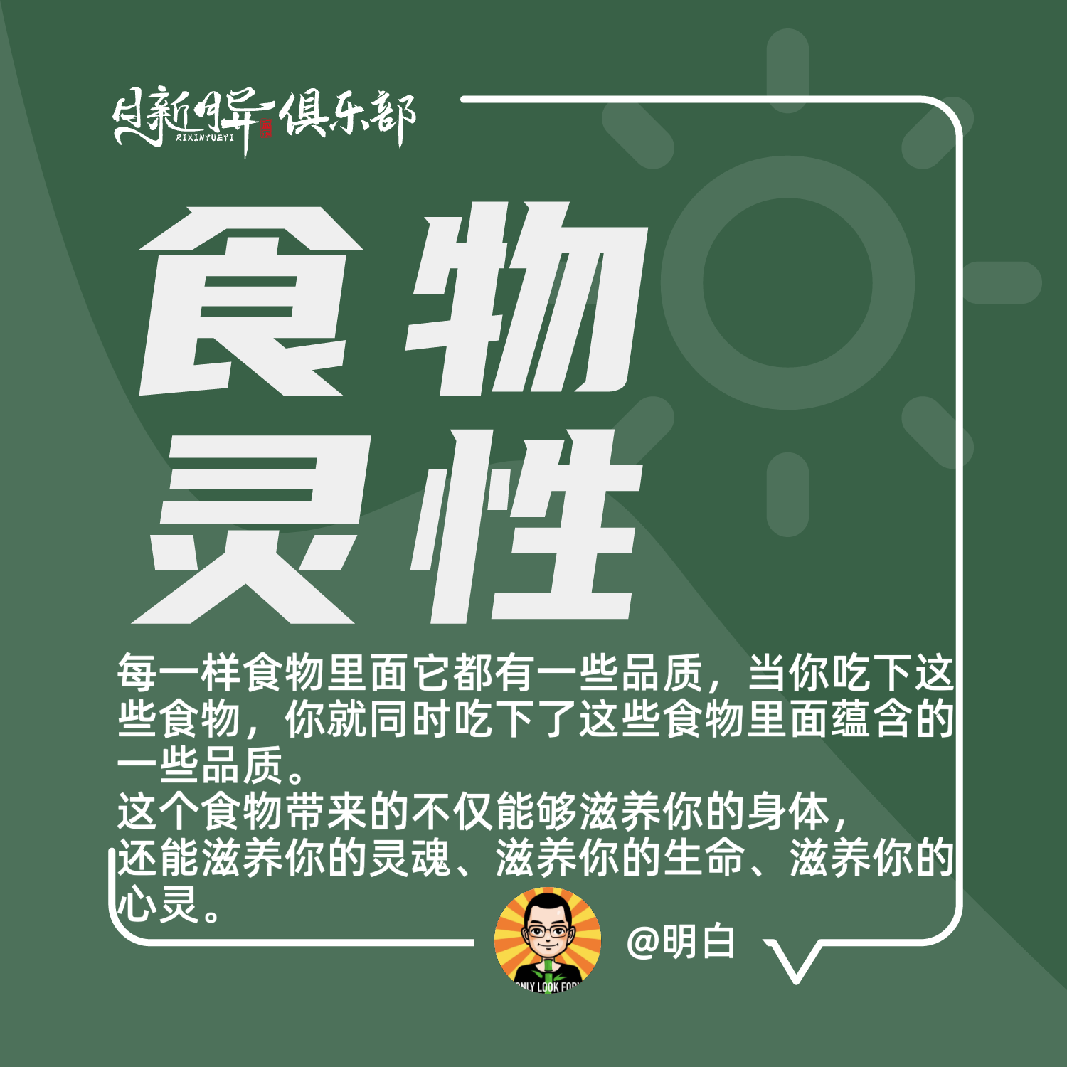 有一本书叫做《改变生命的食物》,它里面提到说每一样食物,其实它都有一些灵性的启发。
