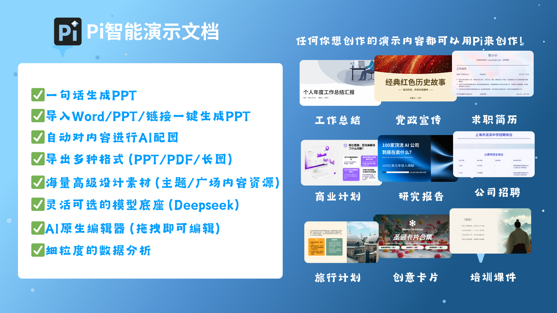 感谢【Pi-智能演示文档】对本期节目的赞助播出: