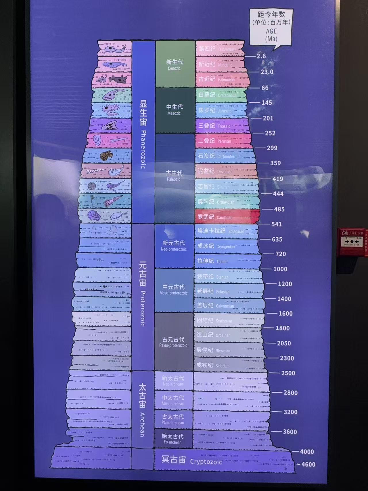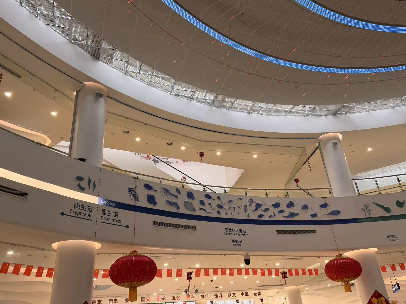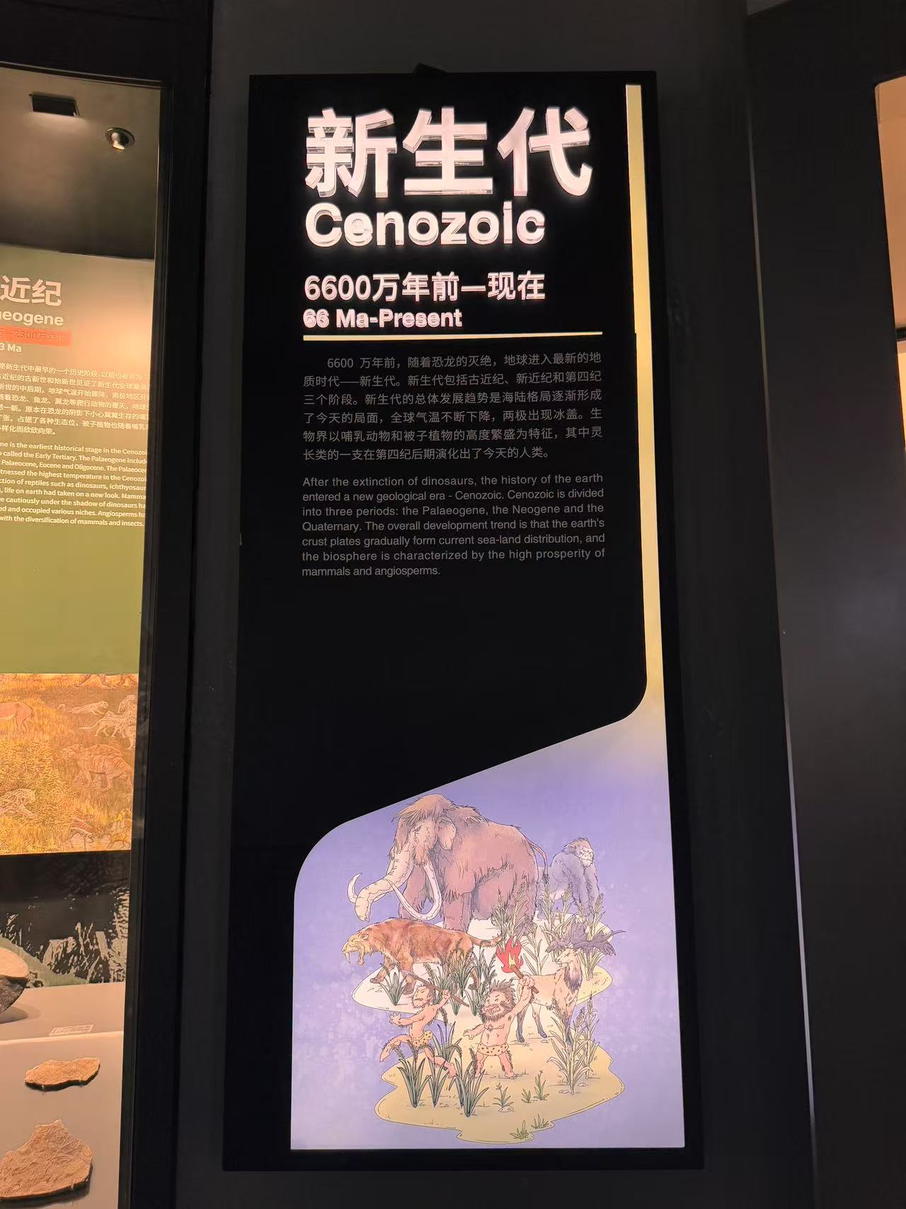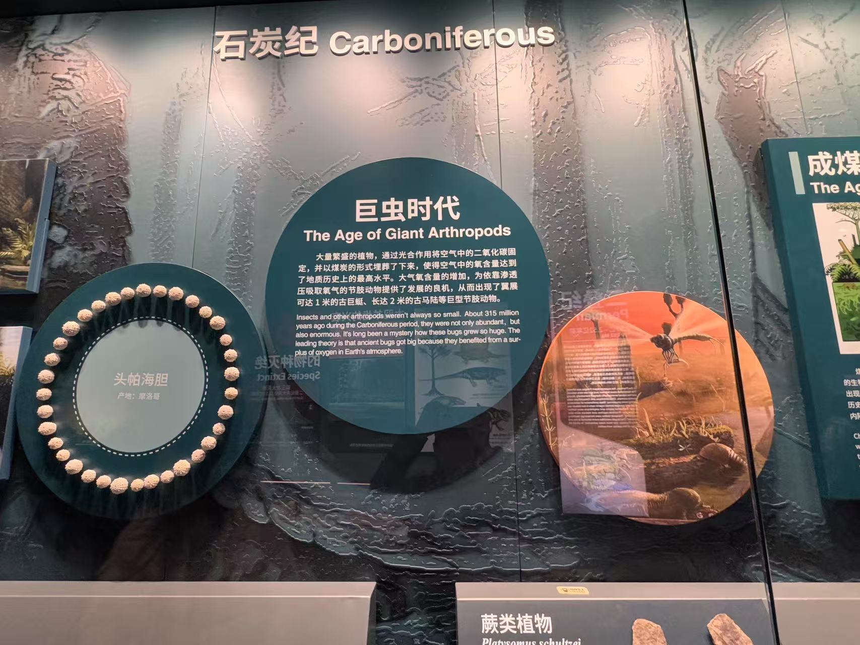 二层的展厅则拉起了一条漫长的时间轴,从寒武纪到我们今天所在的第四纪,生命的爆发-繁荣-灭绝-新生……在如此大的时间尺度上去看生命的发展,人类的”分久必合合久必分“都显得如此不值一提微不足道。