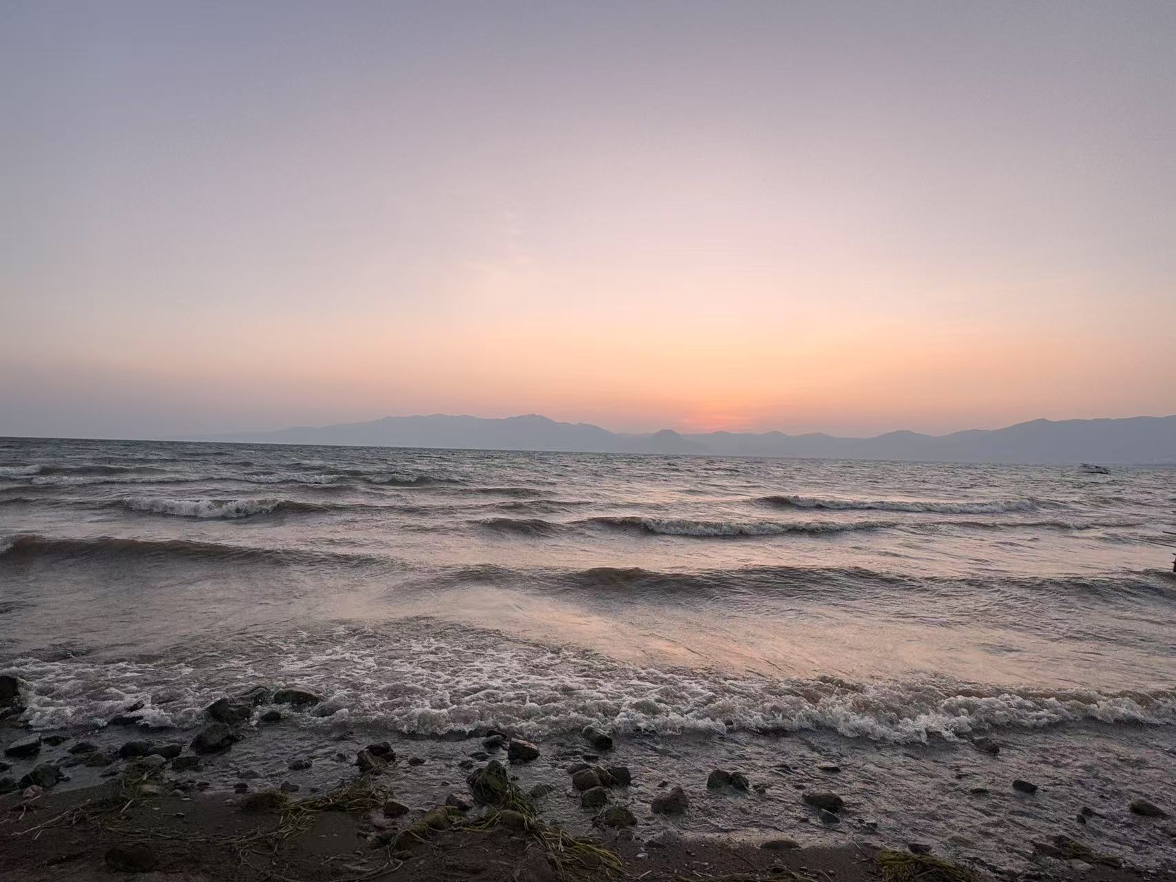 从建水吃完午饭出发,赶到澄江的时候,太阳已经落下。一路上的抚仙湖风光着实迷人,若不是对岸清晰可见的连绵的山,若说这是一片海也不为过吧!