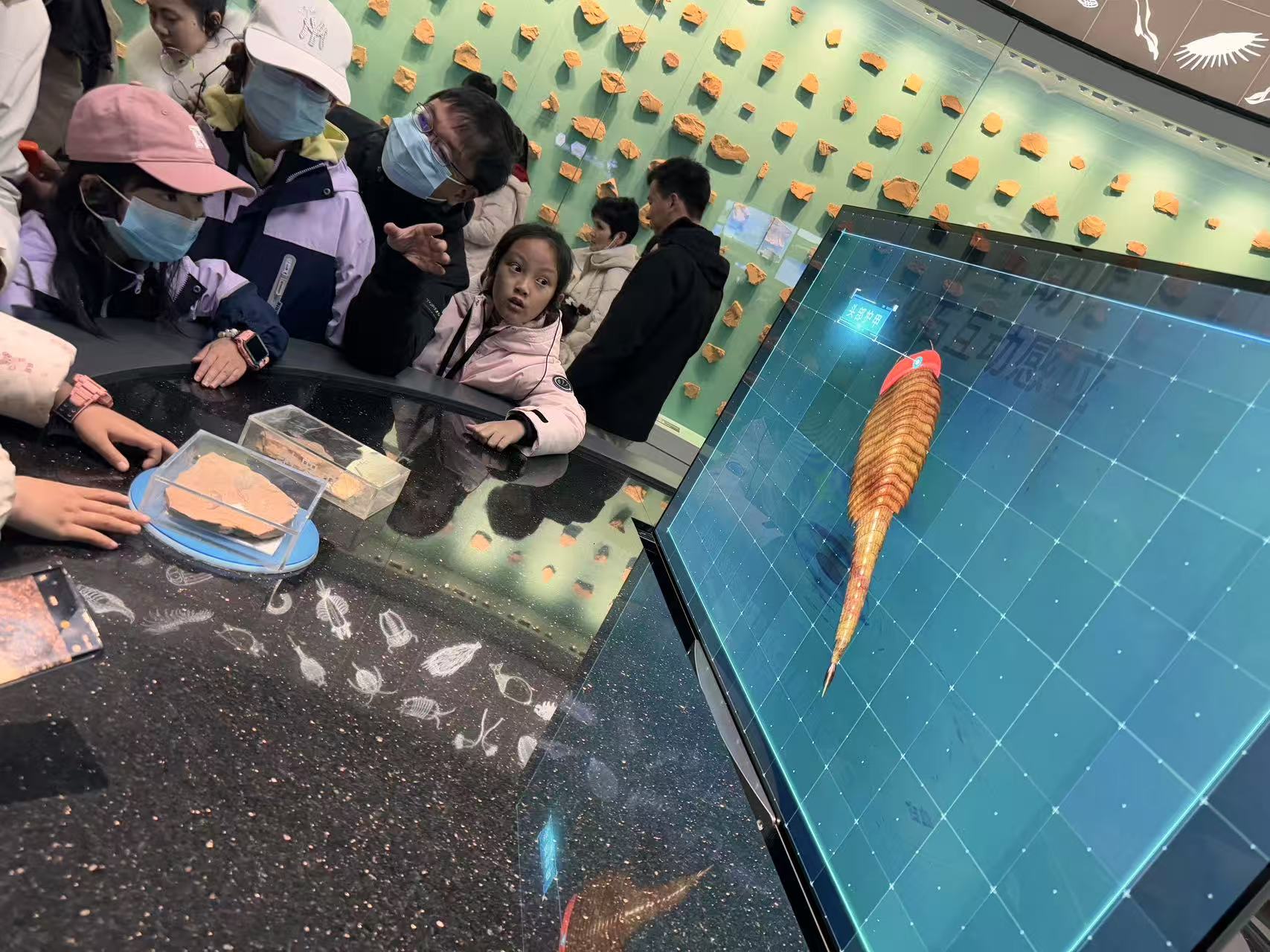 混在小朋友中一起“扫描”化石》》》》