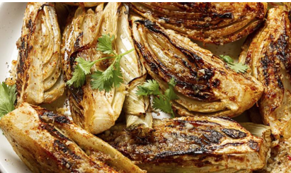 茴香根切丝,橙子切块,剩下的橙子挤成汁儿浇上去,加橄榄油,盐