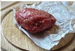 买回来是这样一坨肉馅,形象欠佳但是味道确实还可以,一定要去买调味料调好的肉馅: