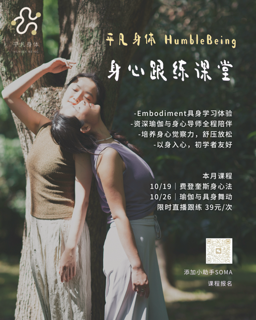 🌟 P.S. 10月19日Jess和陈泉老师将合作分享「身心跟练|费登奎斯练习」,欢迎添加小助手Soma报名或咨询(+VX: SomaIsTheLivingBody)。