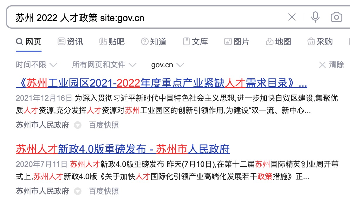 方法2:关键词搜索,地区+时间+人才政策+site:gov.cn
