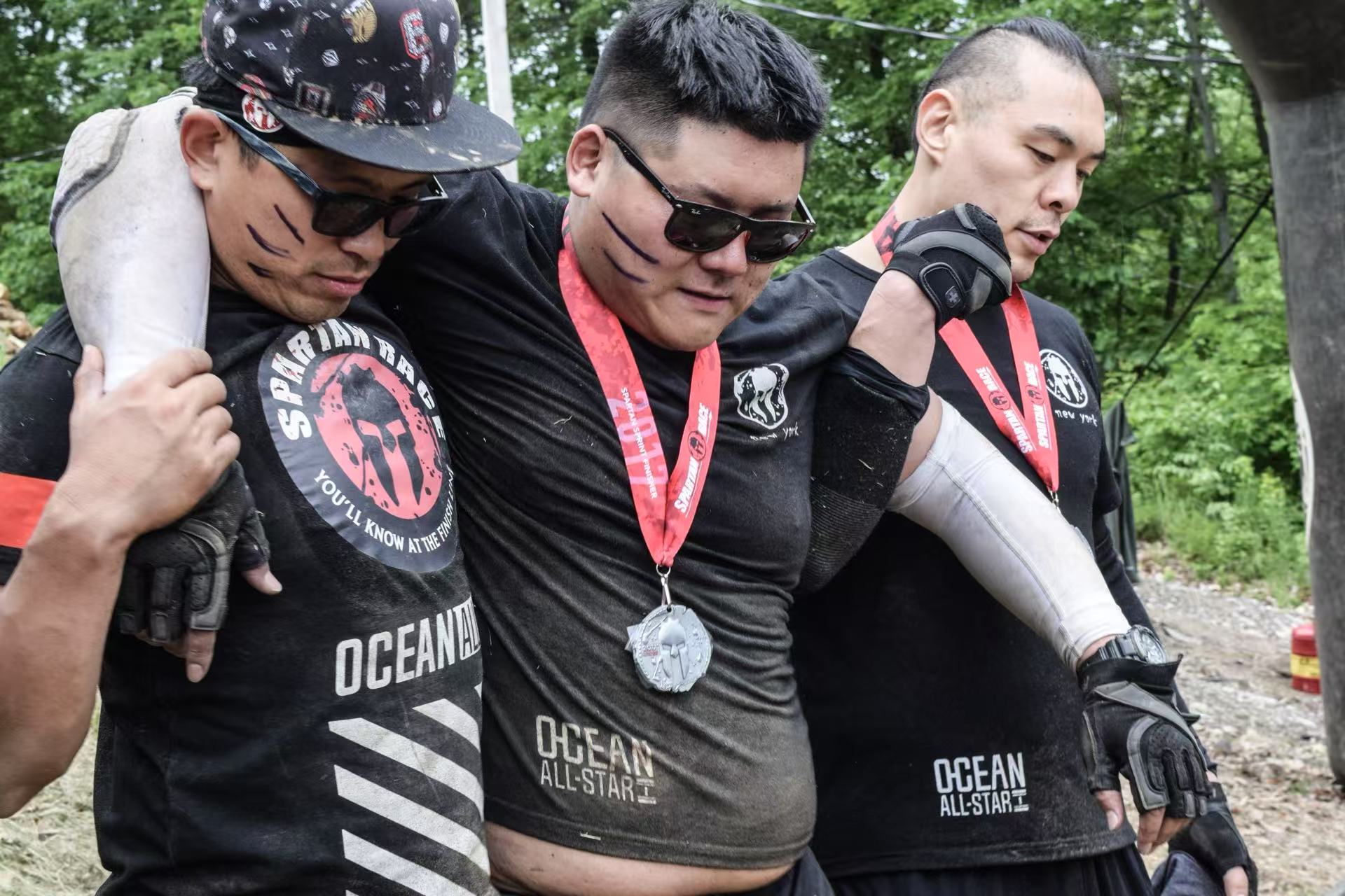 2015年宋哲第一次见磊哥,半月板摔断了,磊哥过来救他(左二是宋哲)