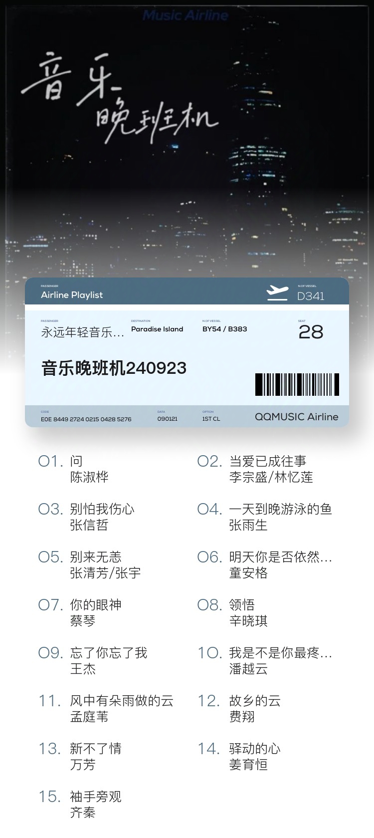 一起在晚班机里感受老歌,乘着音乐的翅膀穿越时空,回到上个世纪。