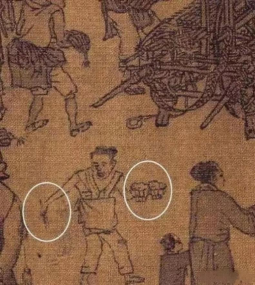 在《清明上河图》中可以看到一个从饭店门口刚出来的小伙计,身上围着围裙,一手打包盒,一手餐具。显然,这个小伙计正在给顾客送餐。