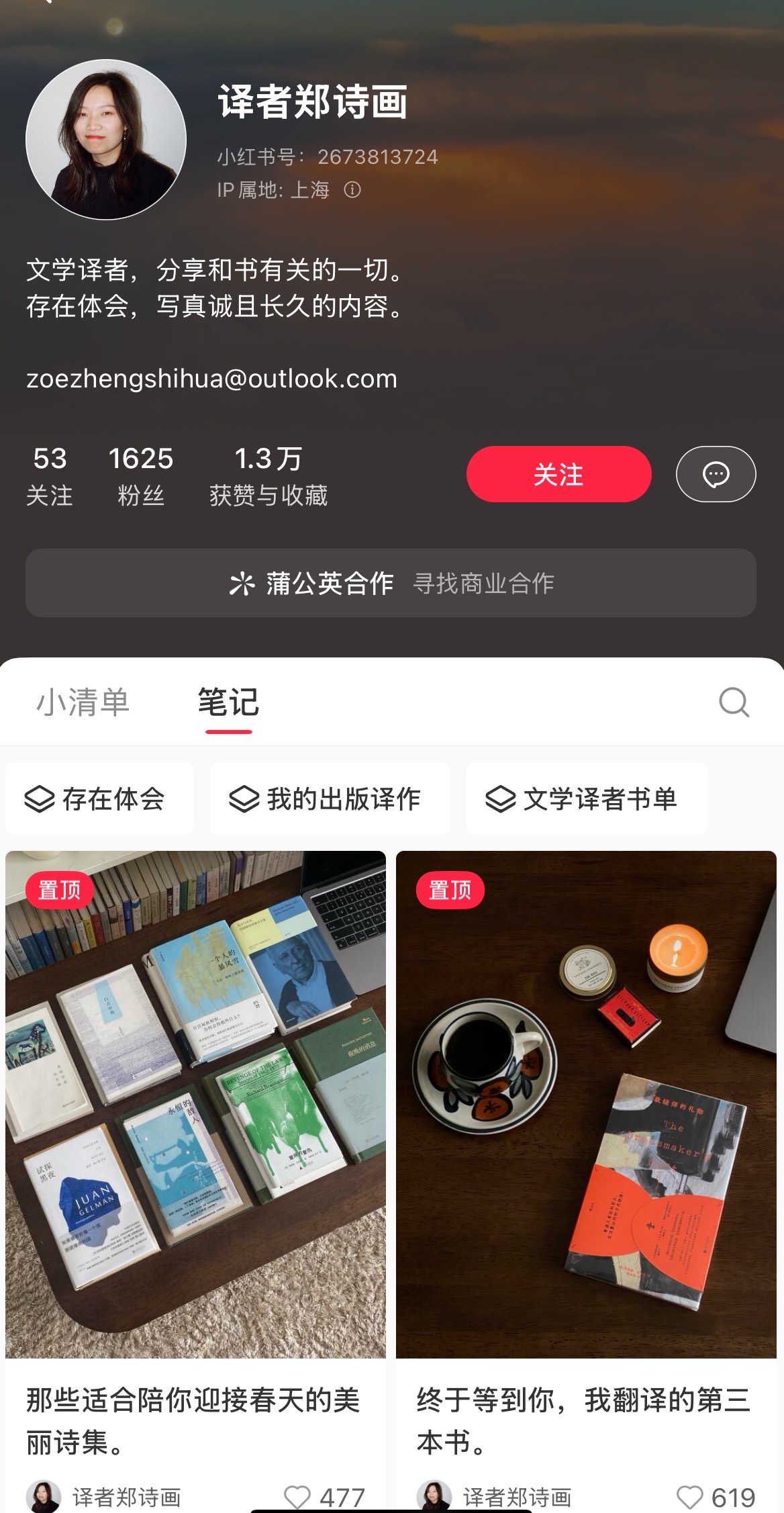 佐老师的小红书账号「译者郑诗画」,欢迎大家亲自去关注她~