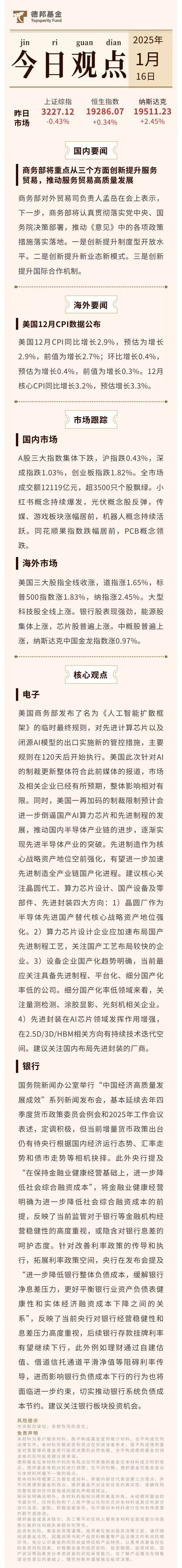 1月16日财经速递,带您最快跟踪板块表现和市场资讯!