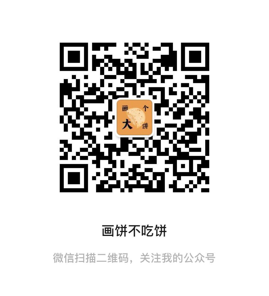 最后,欢迎关注我们的公众号,搜索:《画饼不吃饼》或者扫描下方二维码,欢迎来玩儿~
