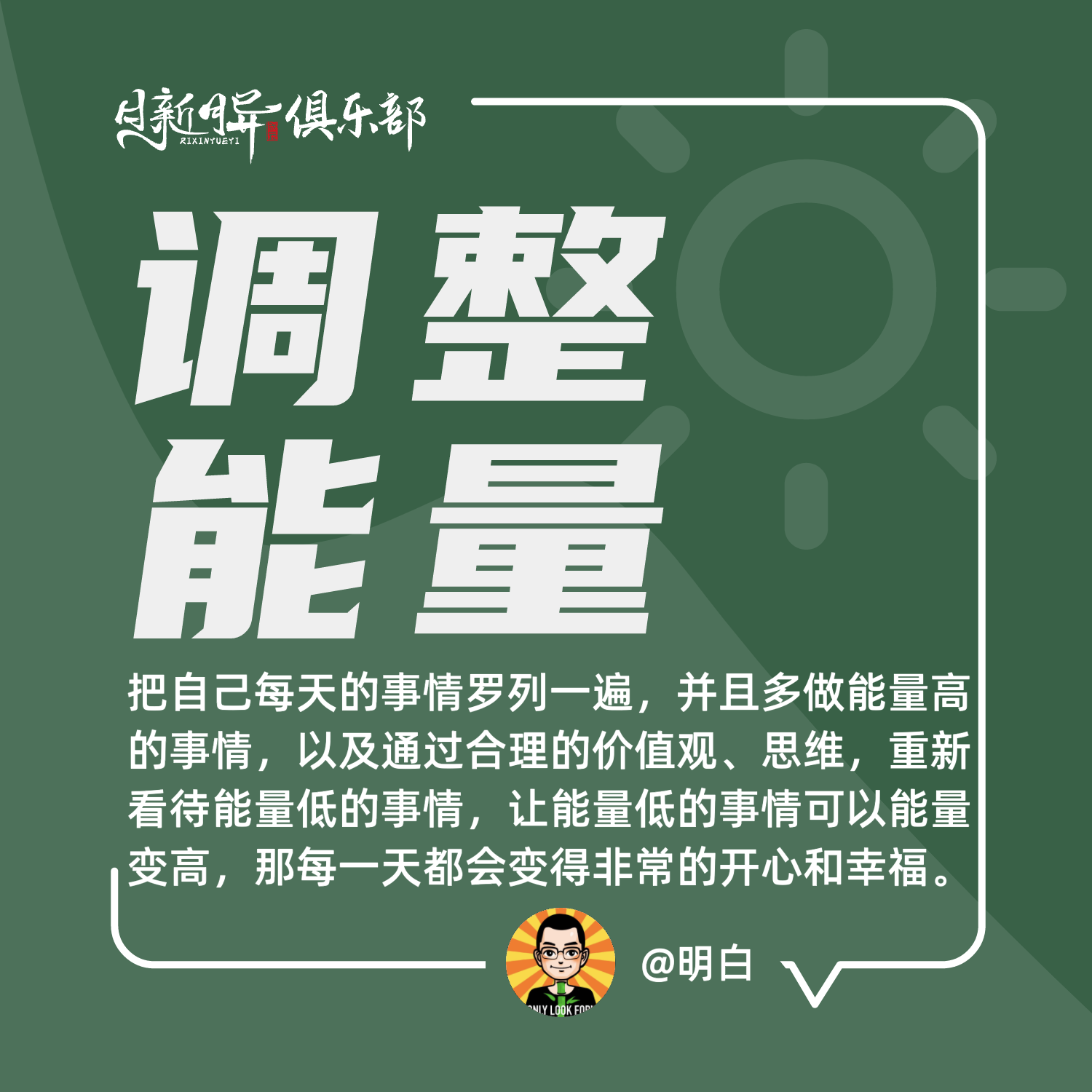所以如果你能够把自己每天的事情这样罗列一遍,并且让你多做能量高的事情,以及通过合理的价值观或者是思维,让你重新看待那些能量低的事情,让这些能量低的事情变成能量高的事情,那你的每一天都会变得非常的开心和幸福,以及你的人生一定会变得越来越好。