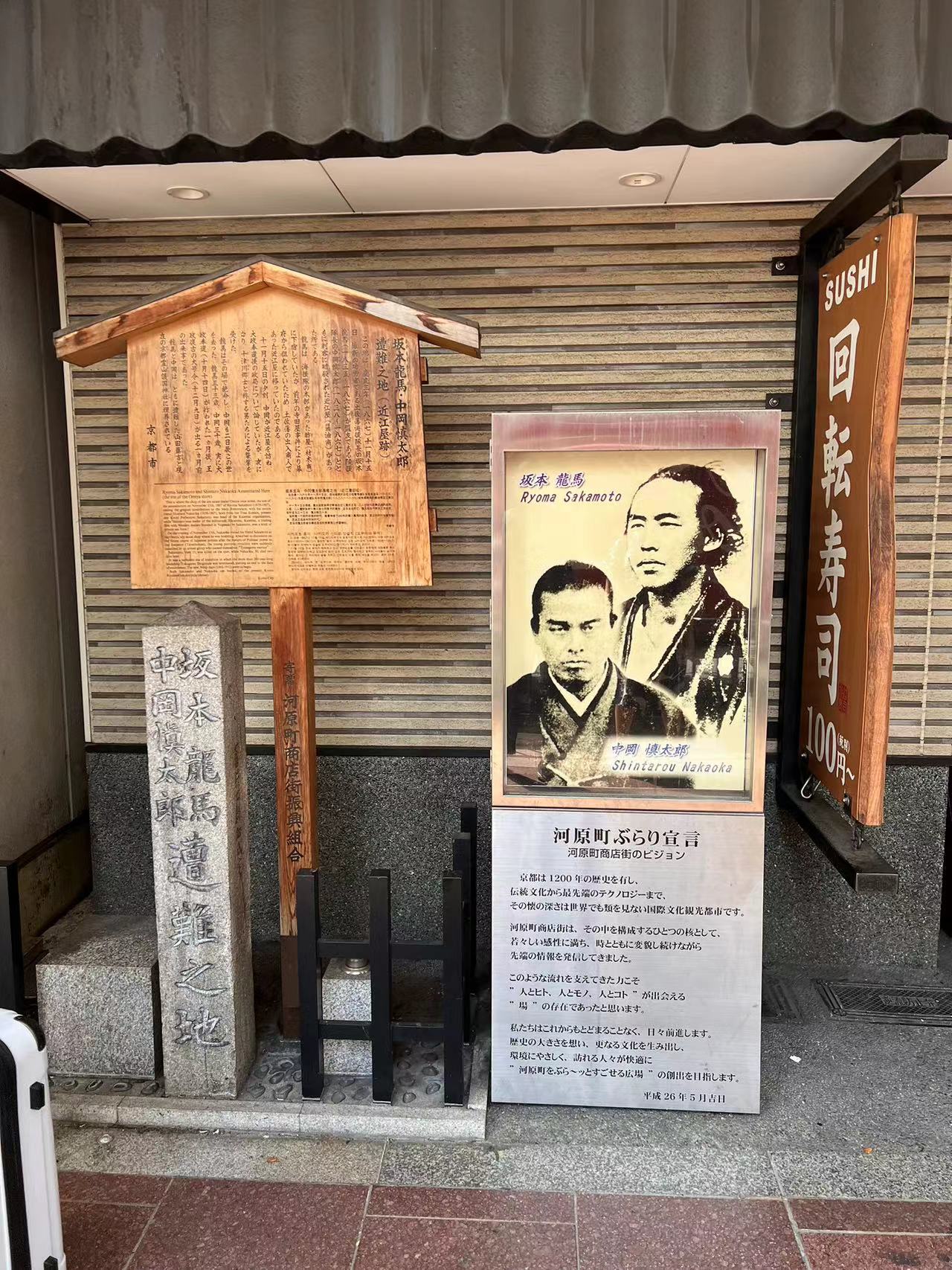 下面放两张在京都街头拍的照片,正是倒幕派被新选组屠杀的池田屋,还有坂本龙马遇刺身亡的近江屋,路过的时候还是有点小感慨,也跟皮少介绍了背景故事,引起了他的兴趣,这才有了这期节目。