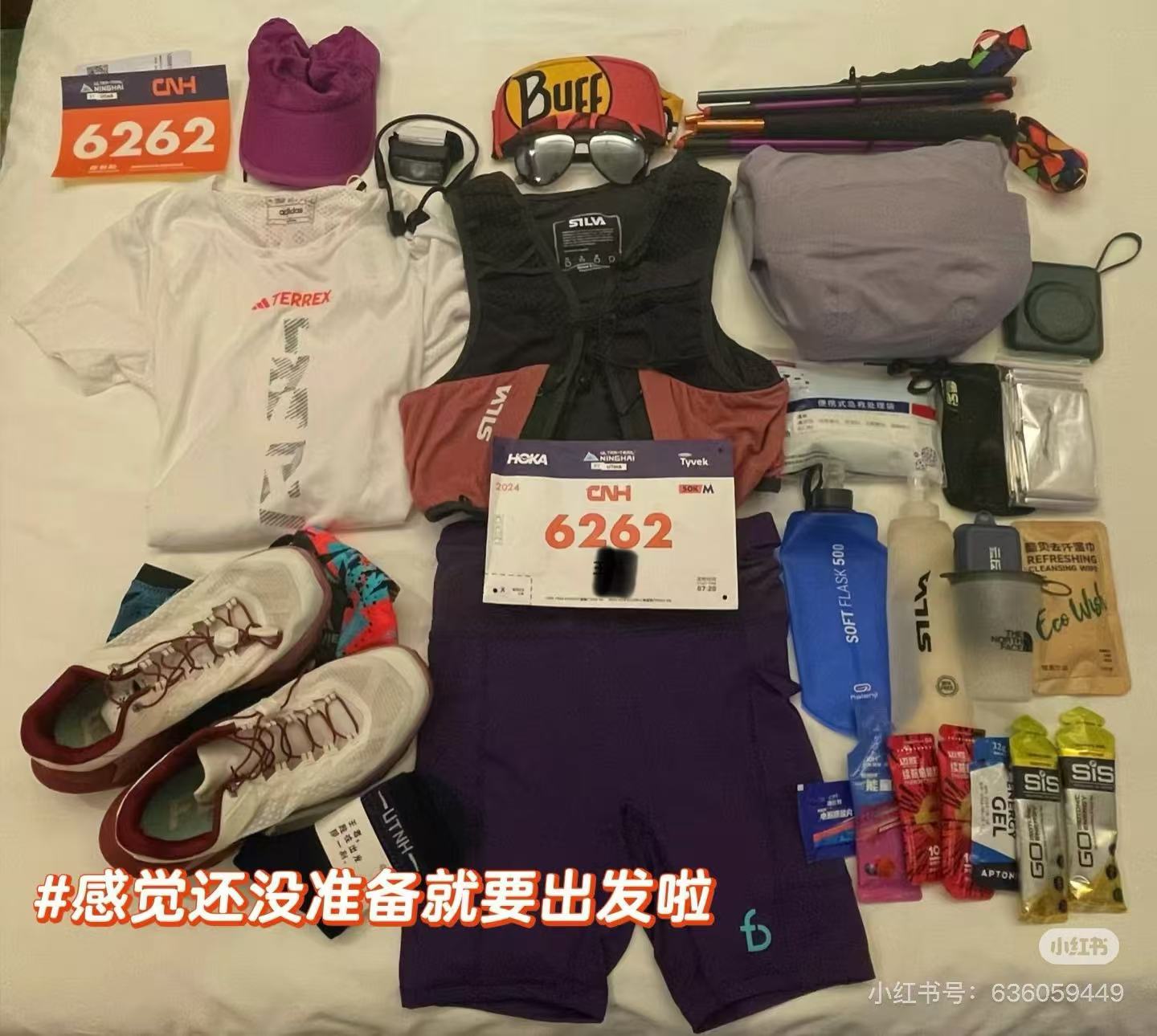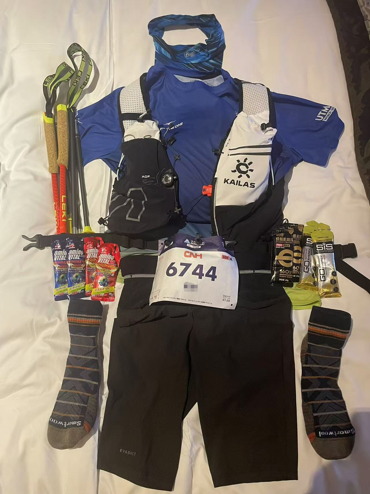 鞋:Hoka 快羊5;Leki登山杖 - 和家驹同款;迪卡侬压缩裤-据说特别适合屁降;凯乐石越野背包-深受好评