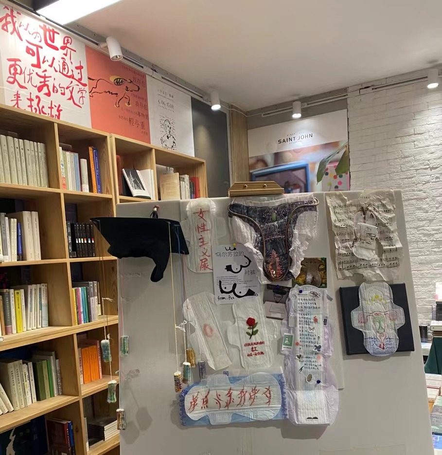 *最近配合“十二书十二城”:爱丽斯·门罗主题阅读,书店发起征集的一个用卫生巾进行艺术创作的展览,欢迎线下观展。
