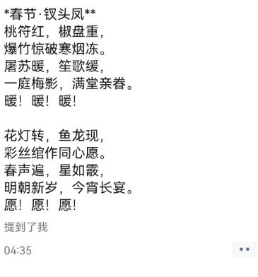 配图:老妈春节期间用DeepSeek写的词(ps:还有个共同点,都是夜猫子)