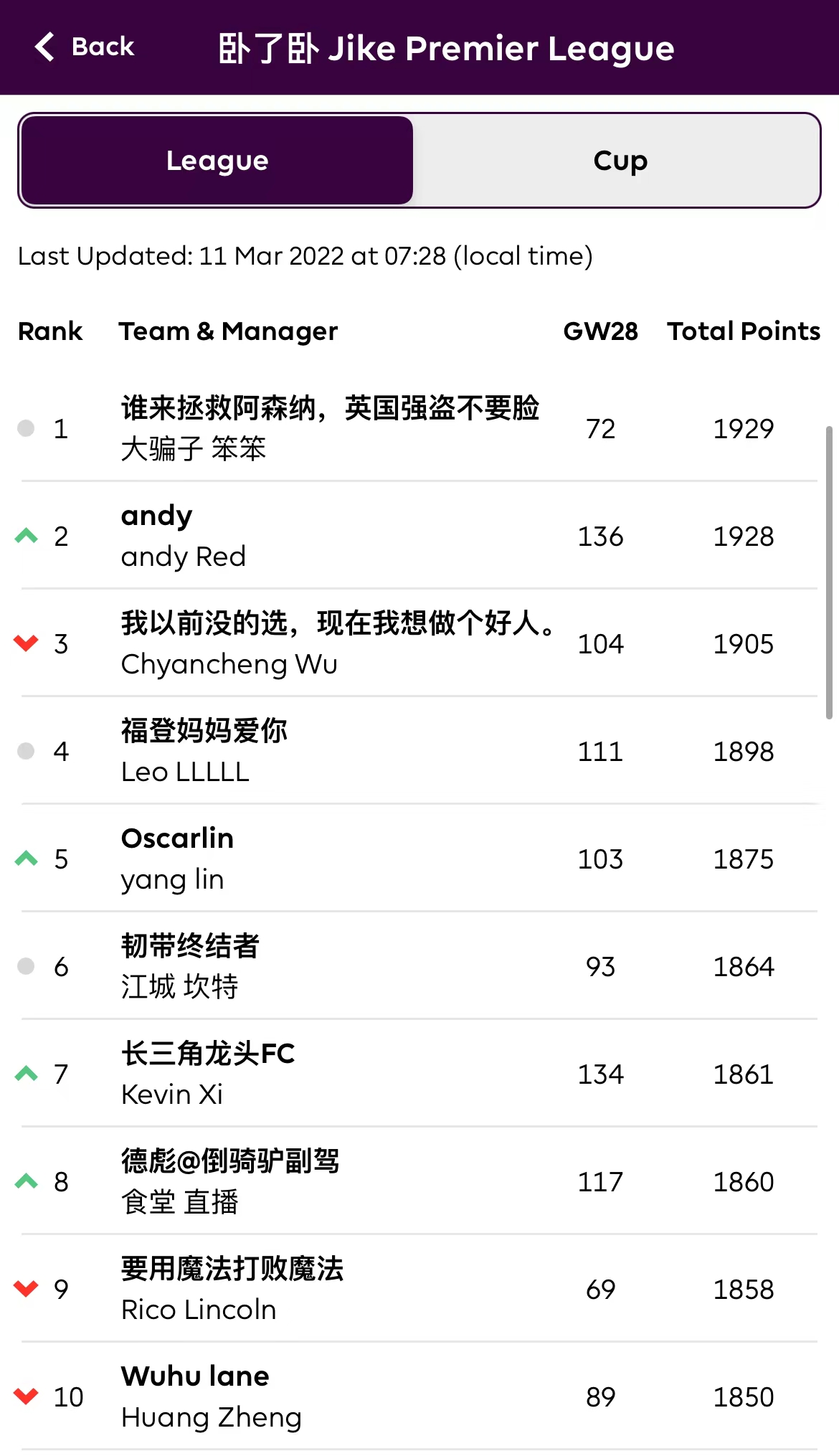 【鸡超积分榜】: