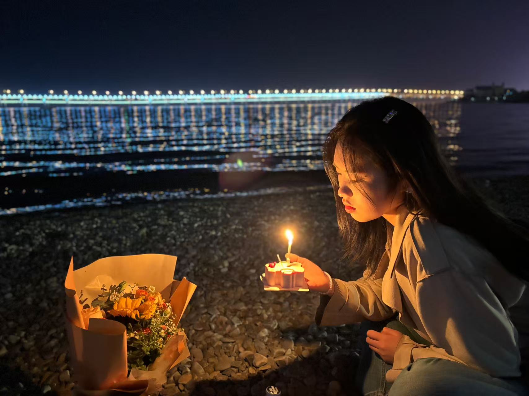 怎么也没想到会那么浪漫的在海边吹蜡烛