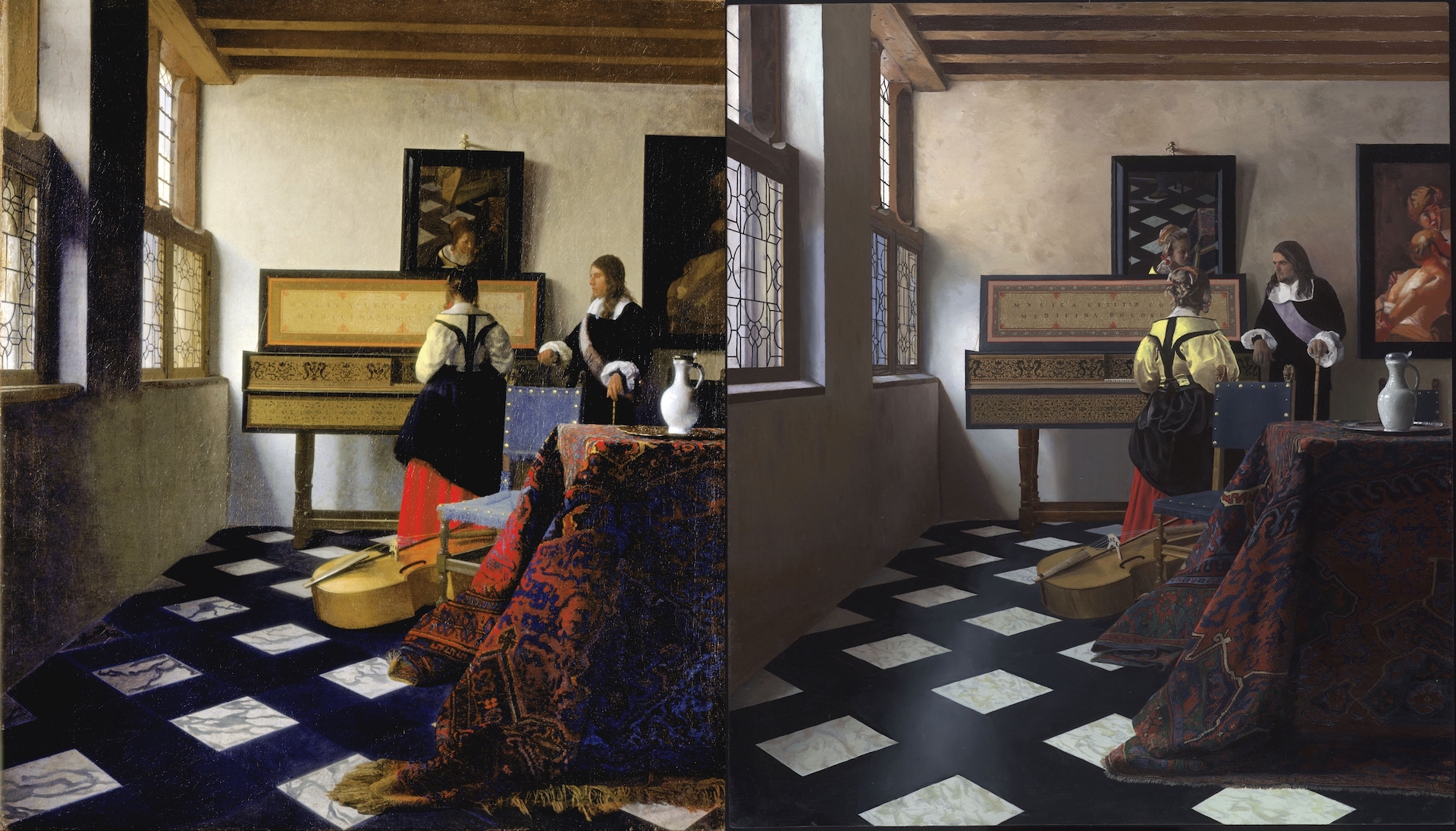 维米尔的音乐课:原画(左)与Tim Jenison的仿制画(右)