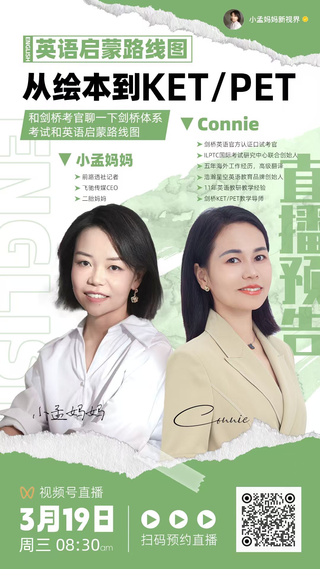 本期我们请到了剑桥KET/PET考试的官方考官 Connie 老师,源起于我家老大正经历从“习得”到“学得”的阶段,我也开始深入研究 KET/PET 的相关内容。虽然不一定非要参加考试,但第一步是了解,才能做出更适合孩子的决定。