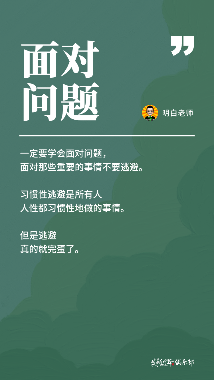所以我在这件事上有一个非常大的感悟就是,一定要学会面对问题,面对那些重要的事情不要逃避。