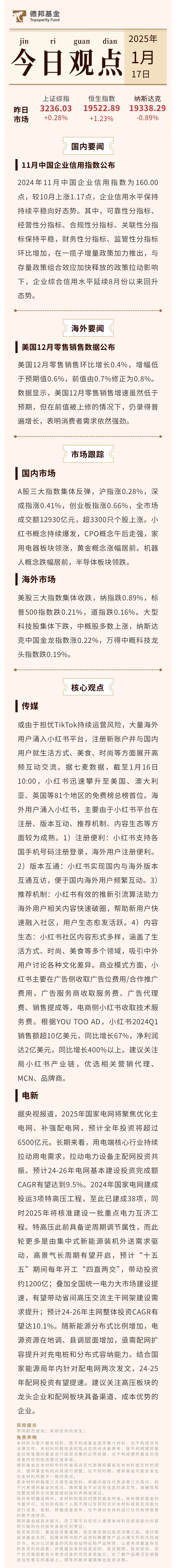 1月17日财经速递,带您最快跟踪板块表现和市场资讯!