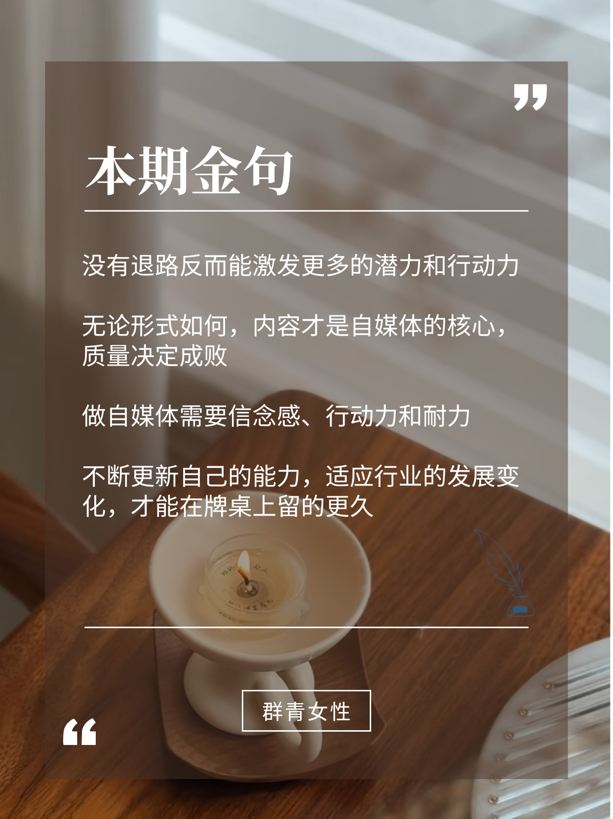 从曾经的职场打拼到自由职业的探索,再到因生活变故重拾自我,机缘巧合下与彤妈相遇,投身自媒体并取得显著成绩。她强调了做自媒体需要信念感、行动力和耐力,过程中要坚持更新、真诚互动、及时复盘和保持良好心态。