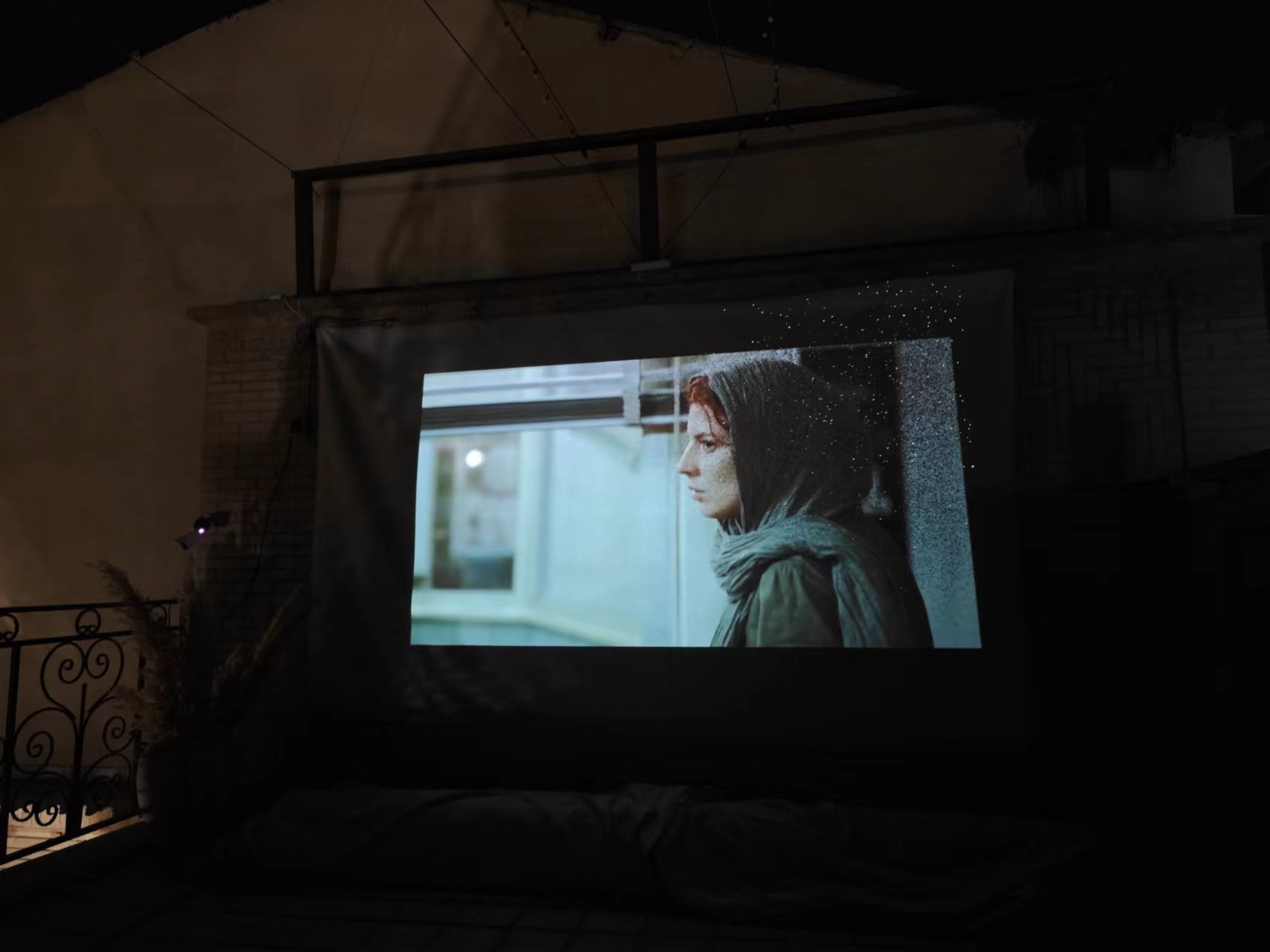25:13 玛尔嘉安排了一次天台露天电影放映——《一次别离》。