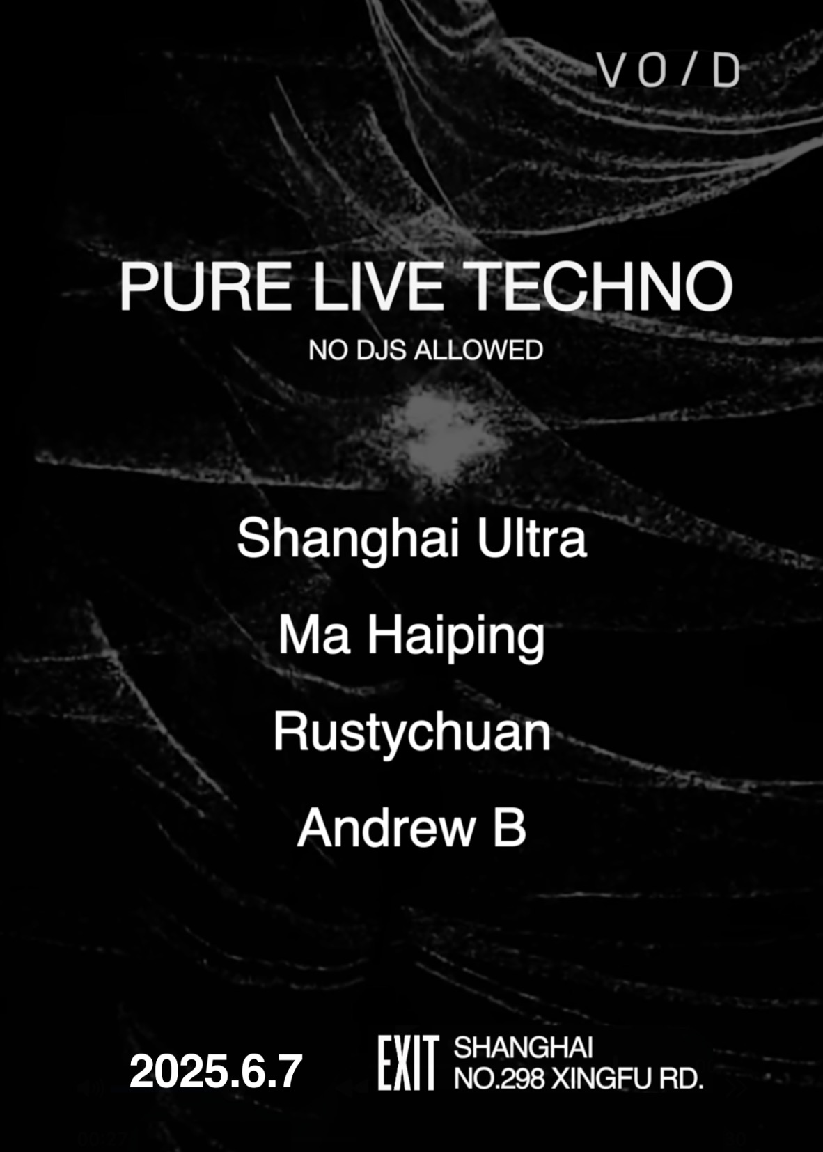 VOID 再次将本土场景推向更高维度!这是一场100% 纯粹 LIVE TECHNO 派对,所有演出者将现场演奏他们原创的 Techno 音乐。