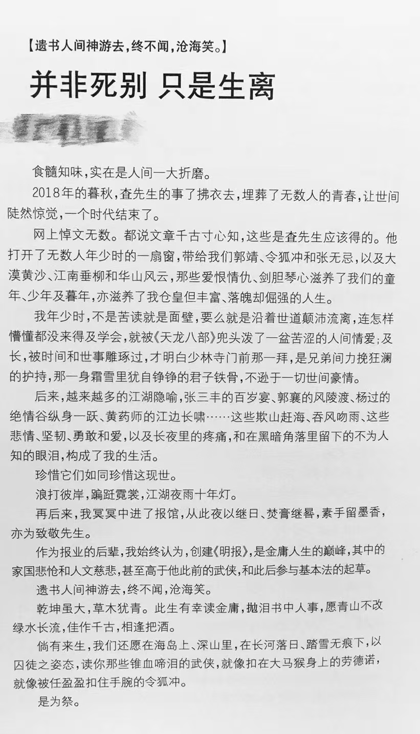 附上晖姐为金庸先生逝世写的悼文👇🏻: