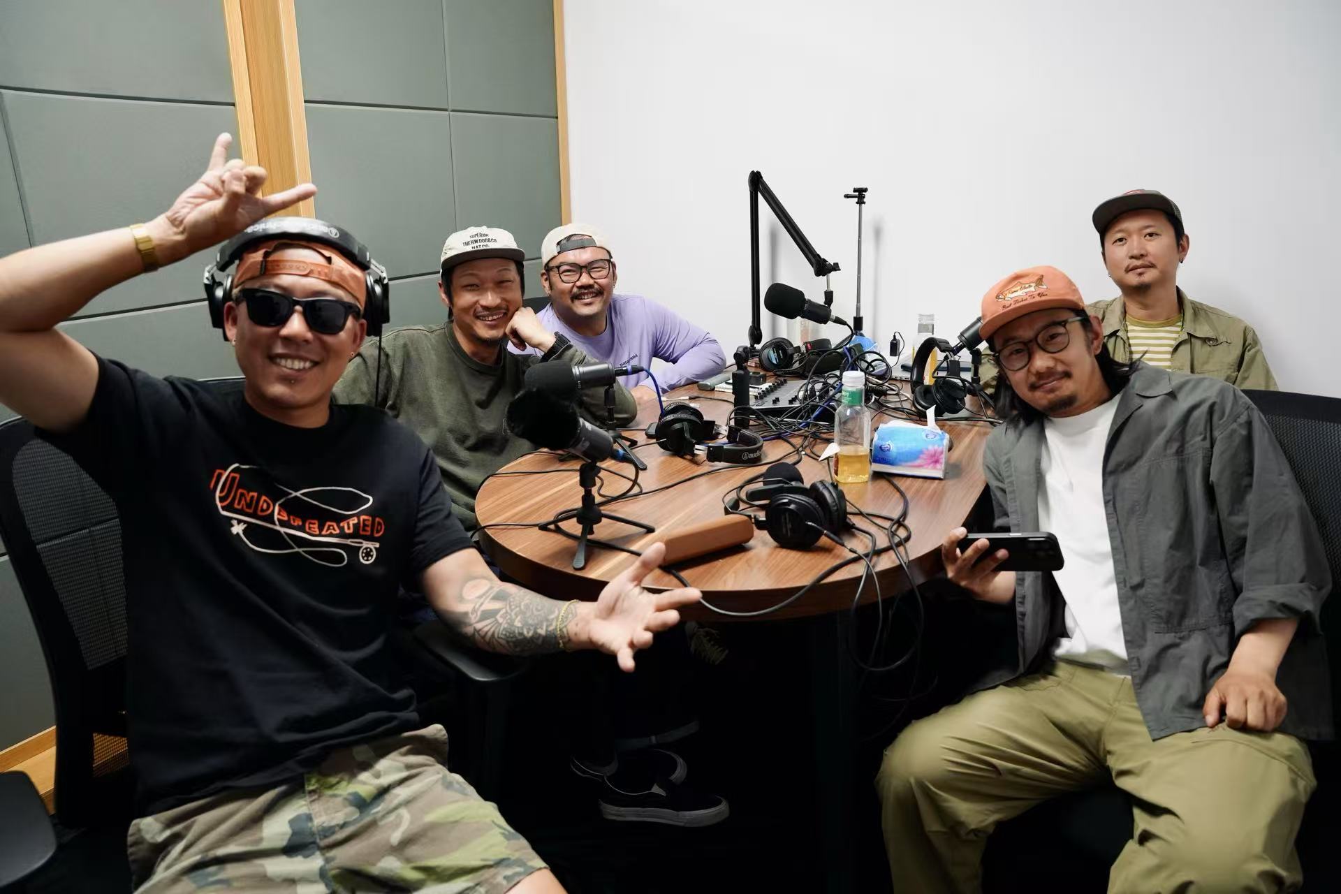录音现场 (左起:饺子、CC、老李、萱儿、韩潮)