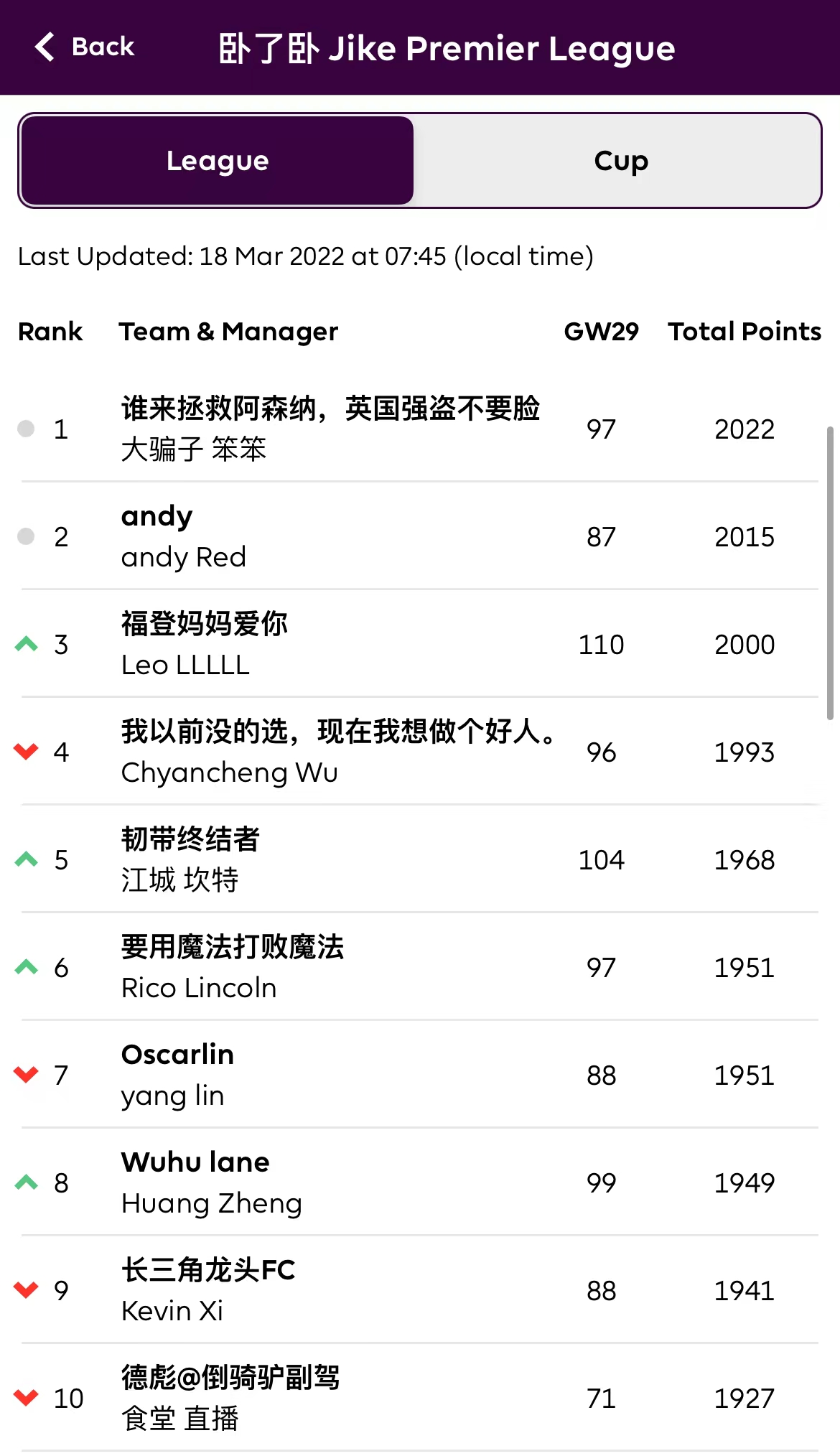 【鸡超积分榜】: