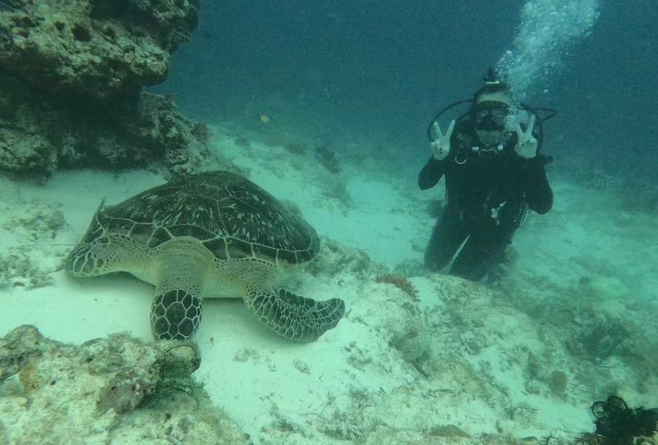 杰西近水楼台去了离北京不远的崇礼进行了周末集训,在我们好友娜娜的驱使下搭上了往返的滑雪列车,坐地铁回到北京时已经累的说不出话。凯瑞因为朋友的建议稀里糊涂就下单了开放水域+进阶开放水域潜水员的五日课程,坐火车飞机轮船突突车跋涉了12小时来到了菲律宾大农村,完全没有准备好即将到来的为期一周的军训生活。穿搭精致戴着墨镜出现在简陋的潜水学校那天,阳光刺眼,蚊子好像疯了,公鸡和土狗漫山遍野的乱叫,凯瑞回过神来想,我来这干嘛来着?