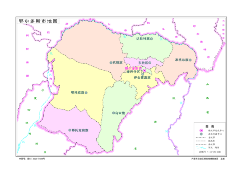 鄂尔多斯市标准地图(图片来源:内蒙古自治区自然资源厅)