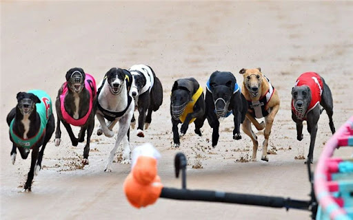 格力犬(greyhound) 在赛狗现场追逐电子诱饵