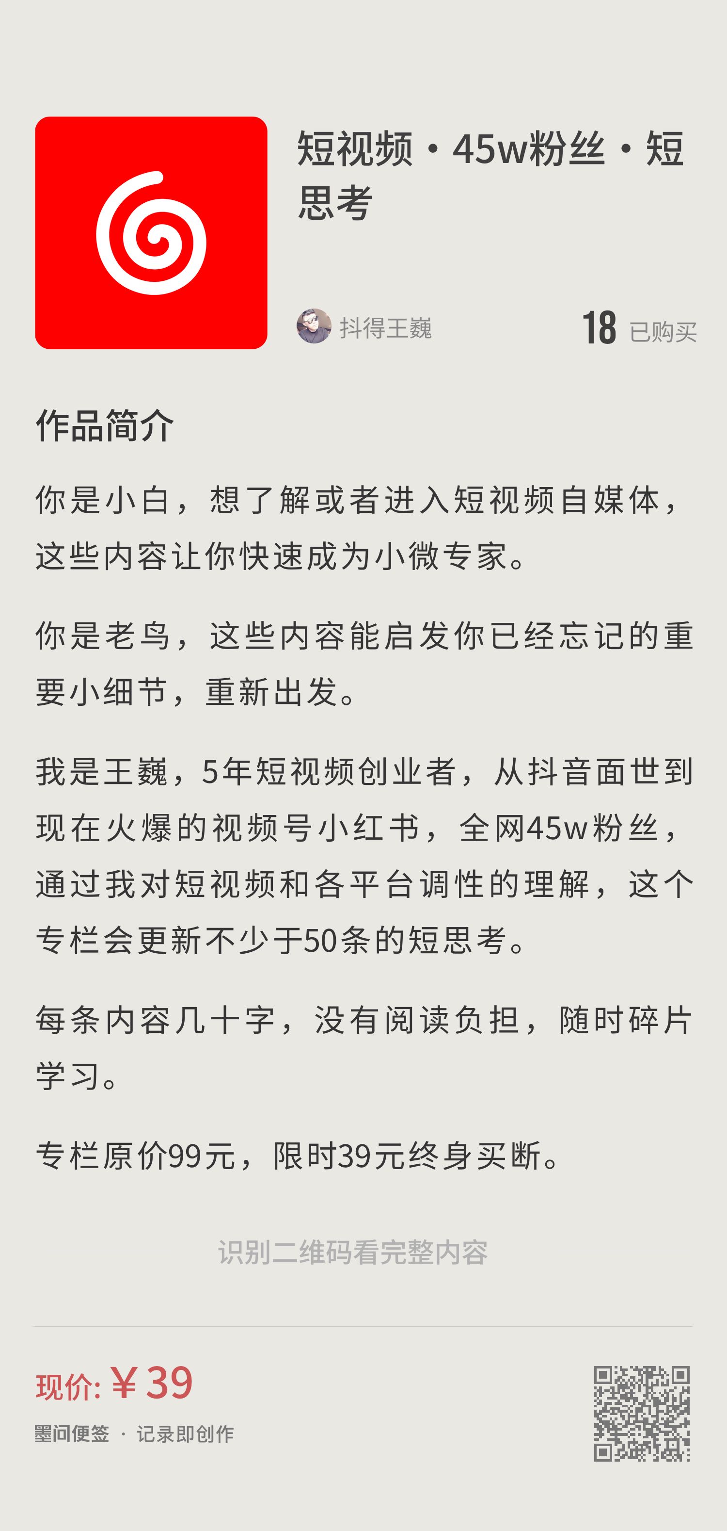 内容中提到的是我这个专栏【短视频.45w粉丝.短思考】