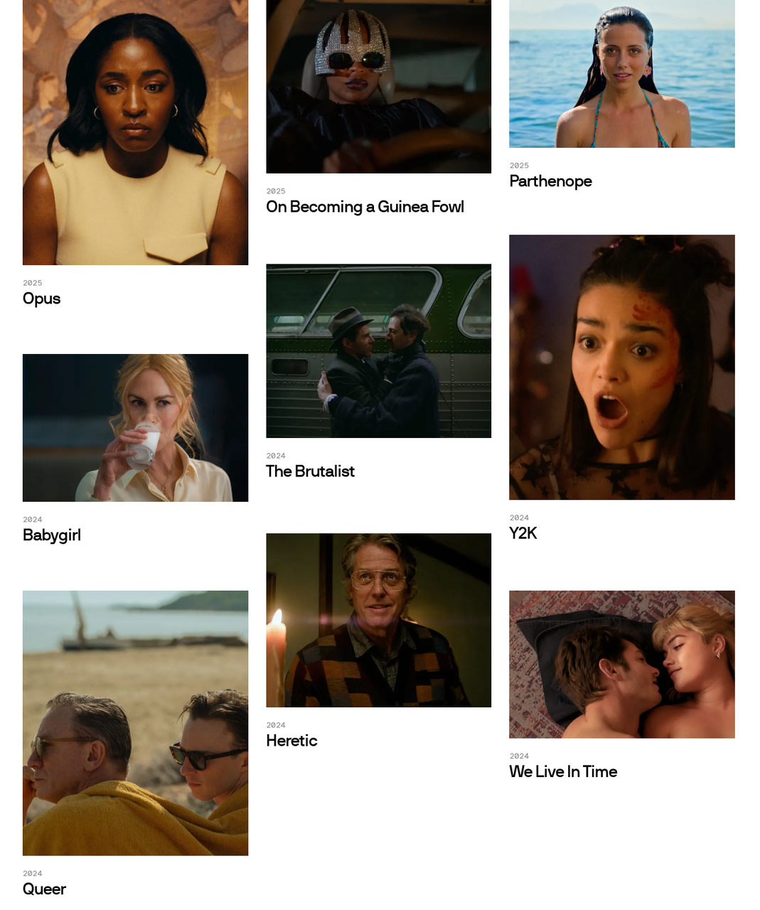 A24 的网页显示最近创作的电影